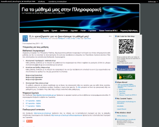 Το blog του καθηγητή Πληροφορικής του 28ου Γυμνασίου Θεσσαλονίκης το οποίο ενημερώνεται σε καθημερινή βάση. Περιέχει άρθρα για όλες τις τάξεις του Γυμνασίου ενώ μεγάλο ενδιαφέρον παρουσιάζουν οι παρουσιάσεις για διάφορες ενότητες που έχουν φτιαχτεί στο Prezi και η ενότητα που αφορά την υλοποίηση μεγάλων δραστηριοτήτων.