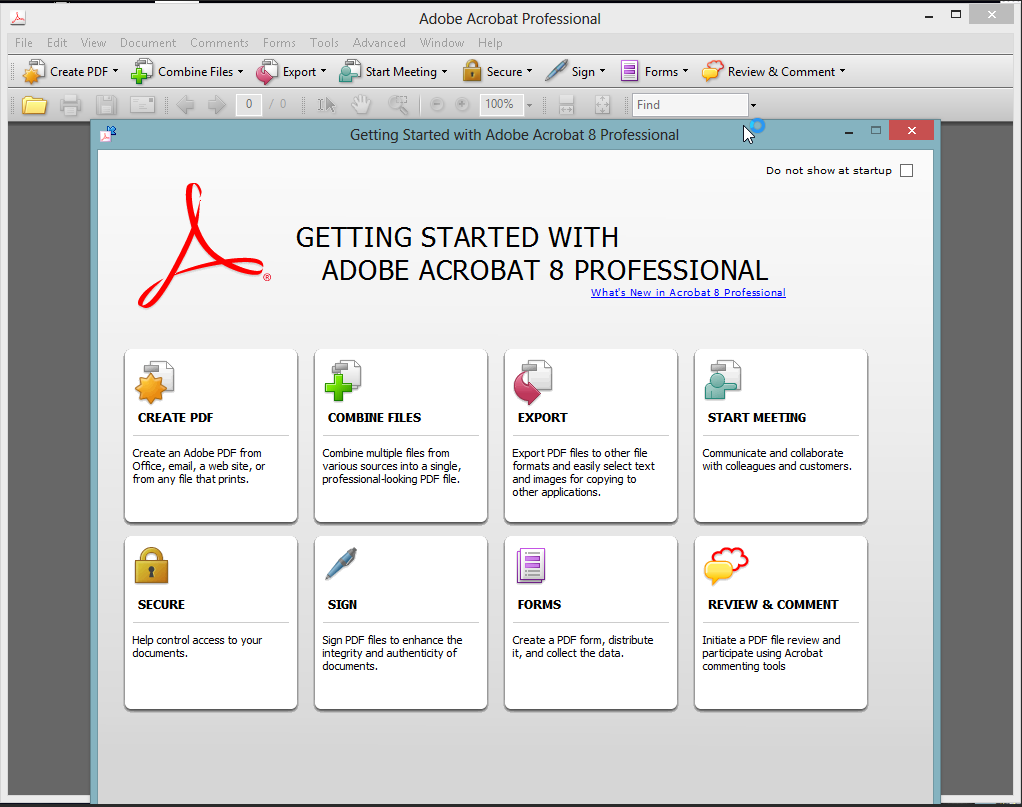 To Adobe Acrobat Pro 8.0 περιέχει είναι ένα ενιαίο σύνολο λογισμικού για προβολή, επεξεργασία, εκτύπωση σε αρχεία PDF. Κυκλοφόρησε για πρώτη φορά το 2006, και είναι είναι διαθέσιμο πλέον Δωρεάν για όλους από την Adobe. Ο αρχικός σχεδιασμός ήταν για χρήση σε Windows 2000 και XP, παρ΄όλα αυτά όμως μπορεί να τρέξει κανονικά ακόμη και στα Windows 8. Κατά τη στιγμή της εγκατάσταση θα σας ζητηθεί ο σειριακός αριθμός του προϊόντος που για τα windows είναι: